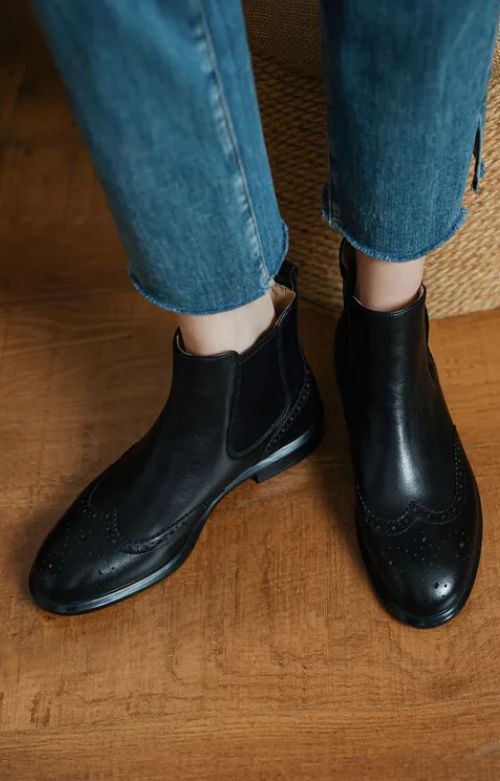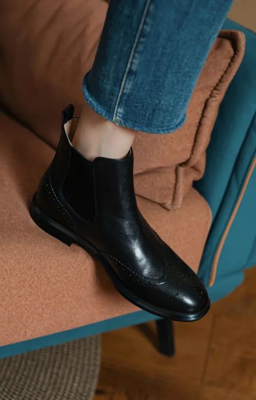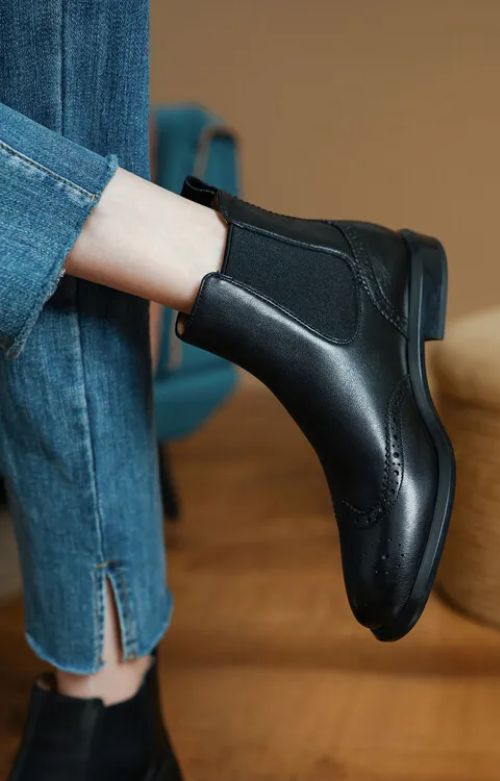 This boot style is crafted from 100% high-quality genuine leather, offering a sophisticated look. Its sleek design, reinforced stitching, and non-slip sole combine style and safety. This versatile boot pairs perfectly with jeans, canvas pants, or a tailored suit, making it ideal for casual or semi-formal outfits.