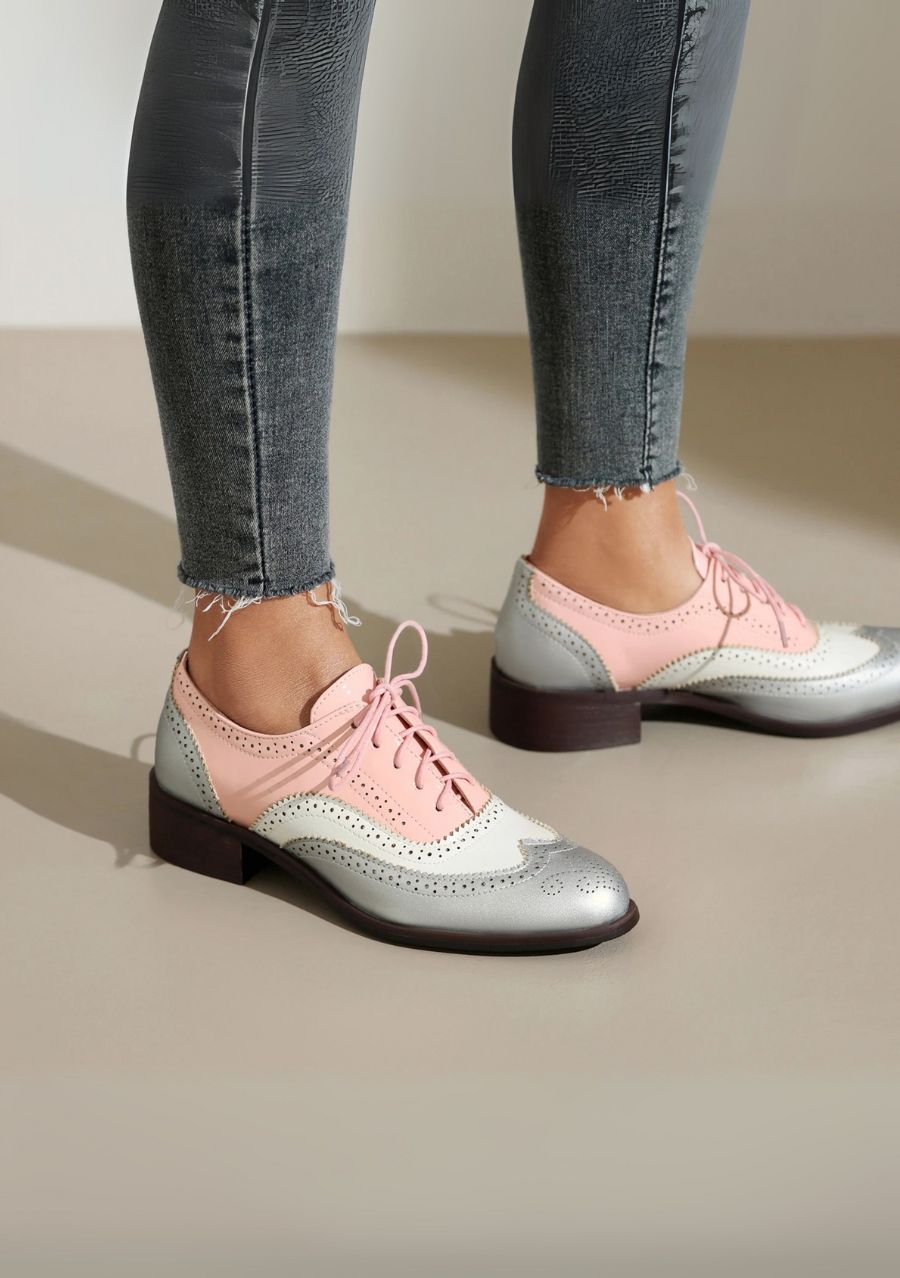 The Jolie Oxford combines the classic charm of a brogue with a modern, delicate touch. Ideal for creative and elegant looks, this style ensures comfort and stability thanks to its 3.5 cm block heel and non-slip rubber sole. Crafted from durable PU, with a soft lining and a neat finish, it's the perfect choice for everyday wear with style and personality.